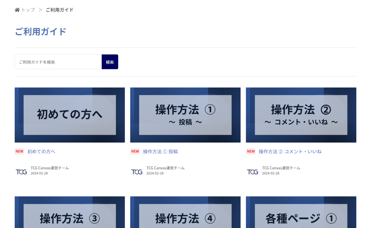 TCG Canvasのご利用ガイドとお問合せフォームをご用意しています