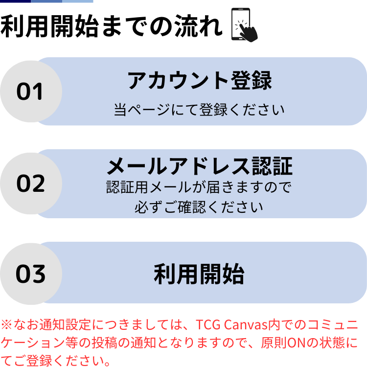 ※TCG Canvas上の通知メールを受信するアドレスとなります。